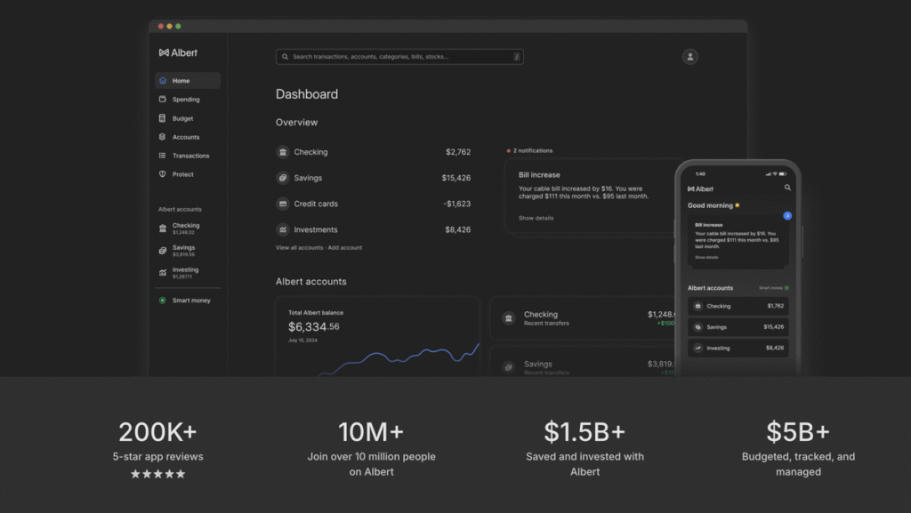 アルバートスマートAIツールと人間の専門家からの本当の助けを組み合わせることにより、あなたのお金を管理するためのフルサービスのアプローチを提供します天才サービス。
