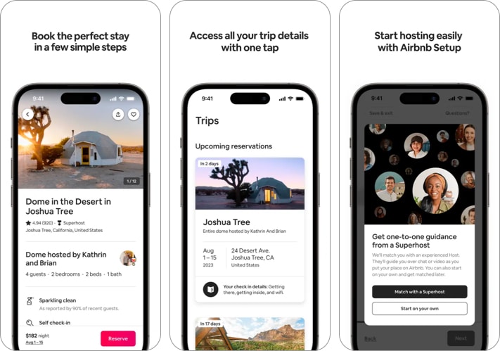 お気に入りのホテルと支払いの詳細を保存して、再び簡単に予約する方法があります。また、滞在に関する通知を受け取り、アプリから直接ホストまたは所有者に連絡し、計画を変更した場合はほとんどの場所で無料でキャンセルすることもできます。