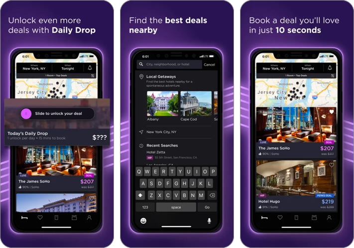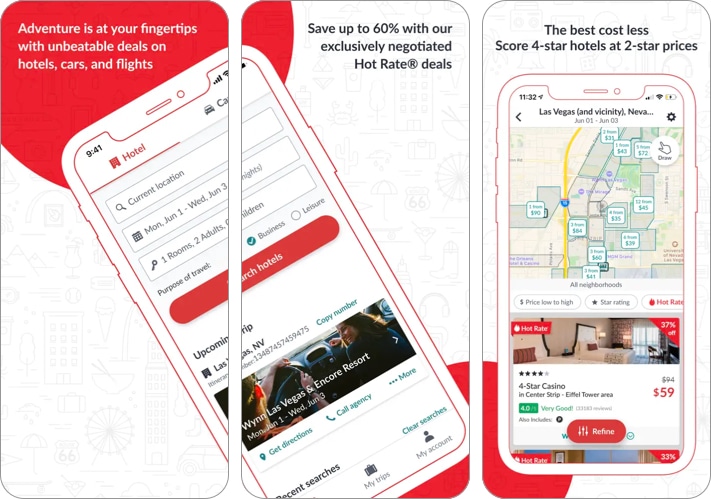 宿泊施設で最高のお得な情報を見つけることを目的としたHotwireは、土壇場の旅行者に最適です。割引料金とアプリ固有のクーポンが表示されます。これにより、苦労して稼いだ現金を節約できます。