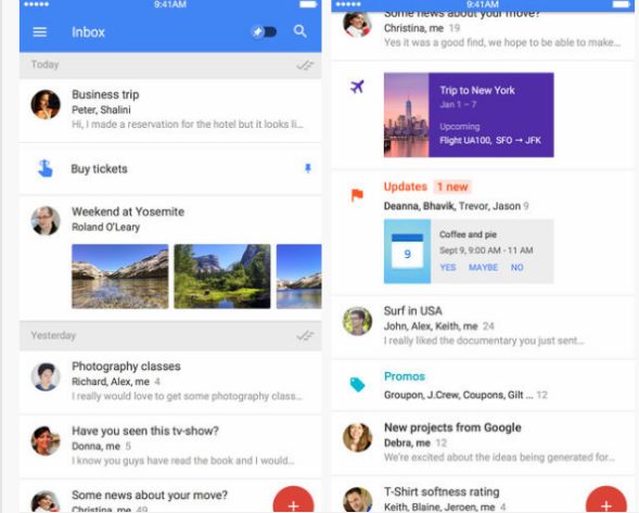 Gmailによる受信トレイでは、電子メールをスヌーズすることができます。すべての遅延電子メールがリストされている「スヌーズ」の個別のリストを表示することもできます。 1日あたりと場所ごとに、明日と自宅で編集するメールをすぐに確認できます。メッセージを左にスワイプすると、時間を設定できる時計が表示されます。同様のメール、思い出、ハイライトのバンドルなど、さらに便利な機能があります。