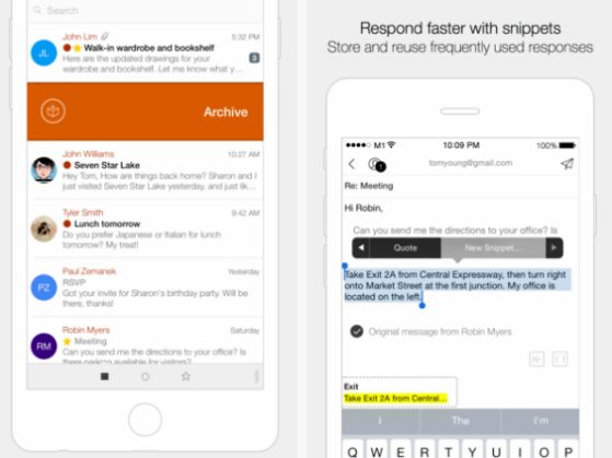 mAilboxは、電子メールの管理に対処できる最初のアプリの1つでした。あなたの生産性は飛躍的に行きました:素晴らしいこと!メールボックスには簡単なスワイプ機能が導入されました。この機能を使用すると、電子メール(右から左)をスワイプするだけで会話を管理できます。
