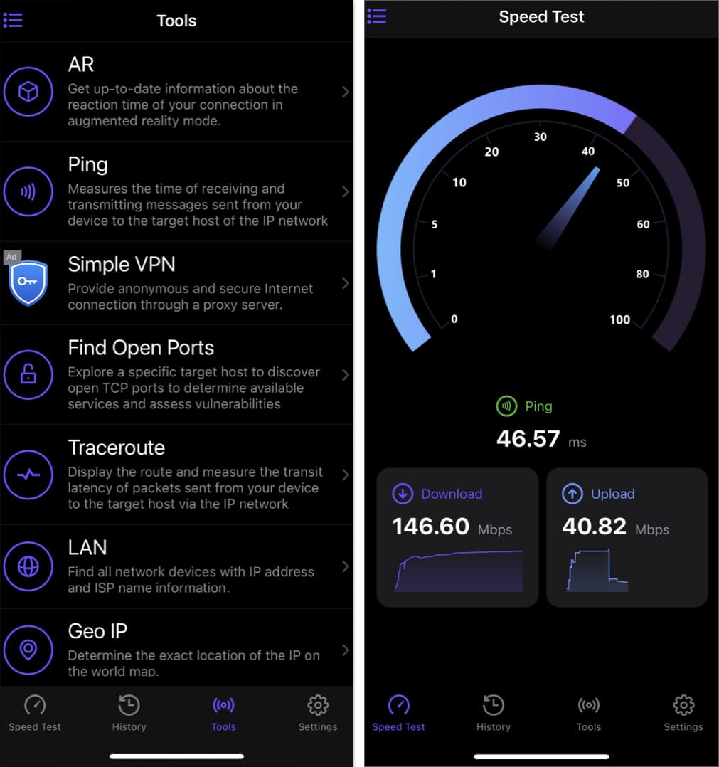 信頼できる速度テストとは別に、複数のネットワーク分析ツールも提供します。これらのいくつかには、Pingテスト、VPN、Tracerouteなど、脆弱性をチェックするためのオープンTCPポートを見つけるオプションも含まれます。もちろん、これらのツールのほとんどは、3日間の無料トライアルを購読した後にのみ私に利用できました。