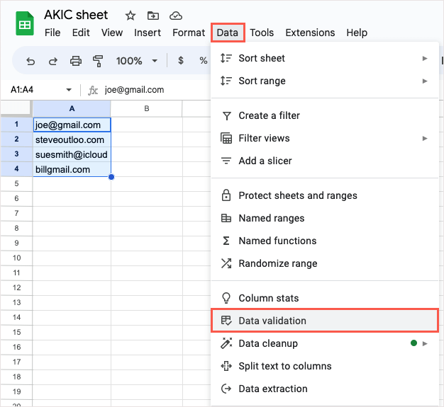 Gmail、Outlook、または他の何かを含むメールアドレスを含むスプレッドシートがある場合、それらが有効であることを確認することができます。アドレスが合法であるかどうかはシートには表示されませんが、 @(at)シンボルとドメインで正しくフォーマットされているかどうかが表示されます。