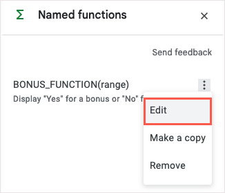 編集を行う必要がある場合は、名前付き関数のサイドバーを再開します。3つのドット関数の右側に、選択します編集。