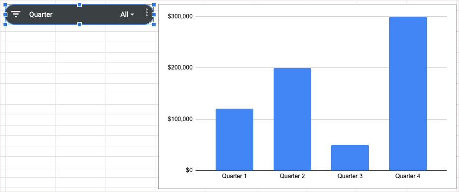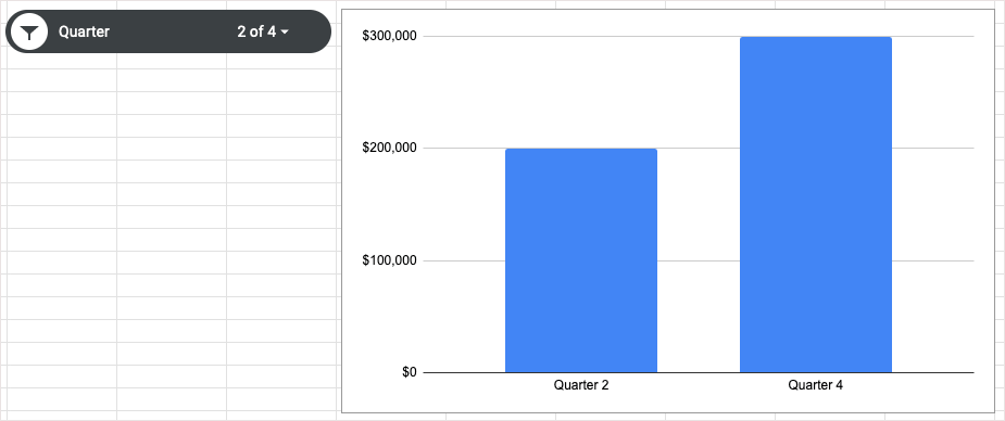 チャートは、データを表示する便利で効果的な方法を提供します。スライサーを使用して、チャートに表示されるデータをフィルタリングできます。これは、必要に応じてチャートデータの特定の部分を確認するのに便利です。