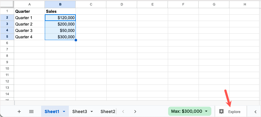 計算をシートに含めることにした場合は、セルを選択して選択して選択します探検するシートタブの右側。