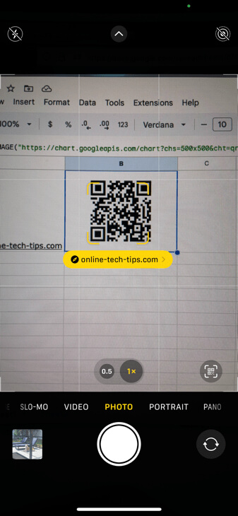 コードが表示されたら、フルサイズを表示するには、行や列のサイズを変更する必要があります。次に、QRコードをスキャンして、予想どおりに機能することを確認します。