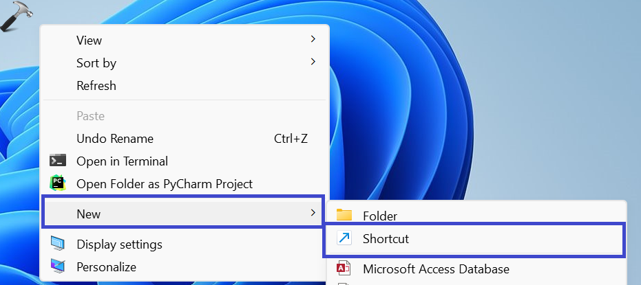 1.デスクトップの空白スペースを右クリックします。 「」をクリックします。new =>ショートカット「。