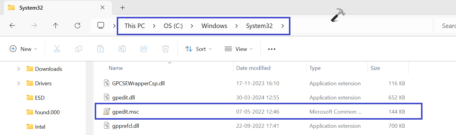 1。ファイルエクスプローラーを開きます。タイプ "gpedit.msc」検索ボックスに。