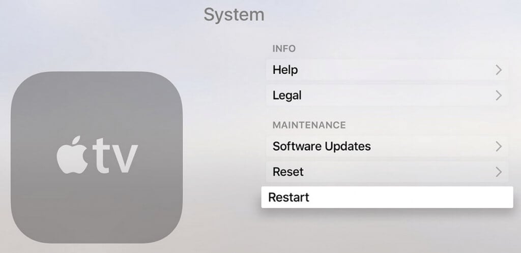 1。APPLETVで行きます設定>システムそして、に移動しますメンテナンスセクション。