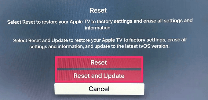 4。APPLETVまたはAndroidTVを工場出荷時の設定にリセットします