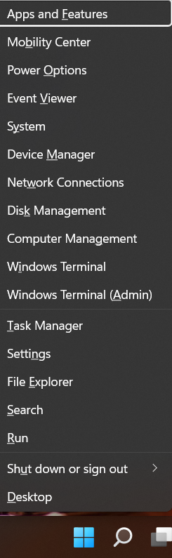 1。右クリックしますWindowsの開始タスクバーに存在します。