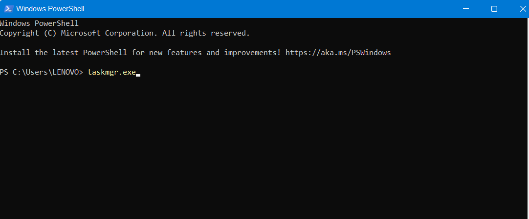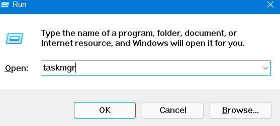 2。次に、タイプtaskmgr.exeそしてヒット入力。