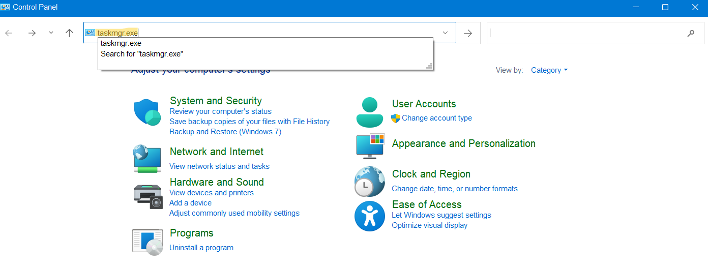 2。その後、タイプtaskmgr.exeアドレスバーでヒットします入力。