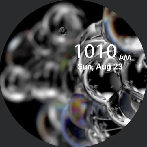 これらの時計の顔は広くカスタマイズ可能ではありませんが、エレガントで、単に美しいです。背景の動きは魅惑的であり、色と抽象的なデザインがあなたの注意を引きます。現在の壁紙に飽きたら、時計の画面をタップして変更してください。