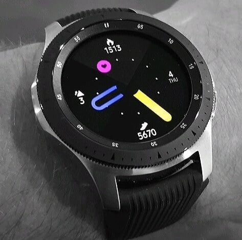 カスタマイズ可能ですが、このウォッチフェイスは非常にミニマリストで上品です。残念ながら、Galaxy Watch Active 1ではカスタマイズオプションは利用できません。それでも、デザインディスプレイは美しく、試してみる価値があります。