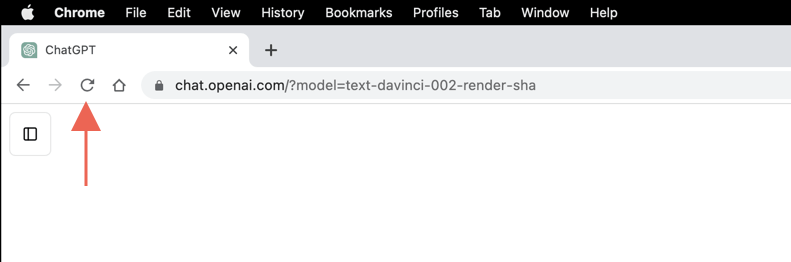 さわやかなChatGptは、多くの場合、AIチャットボットが正しく動作するのを防ぐランダムな技術的な不具合を排除する最も迅速な方法です。を選択しますリロードアドレスバーの横にあるアイコンは、Webブラウザーを使用している場合は会話を再開します。