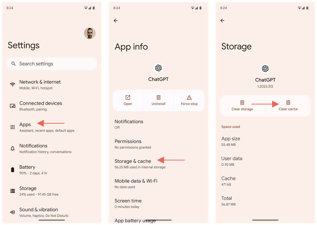 AndroidおよびiPhoneに関するChatGptのモバイルアプリは、Webのカウンターパートと同様に、デバイスの内部キャッシュにデータを保存しています。 AndroidでChatGPTキャッシュをクリアするには: