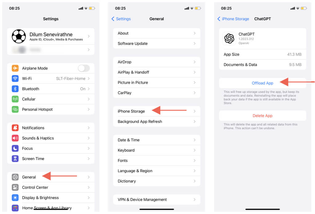 ChatGPTのiPhoneバージョンは、アプリのキャッシュをクリアする簡単な方法を提供しません。代わりに、唯一のオプションは、アプリをオフロードして再インストールすることです。それをするために: