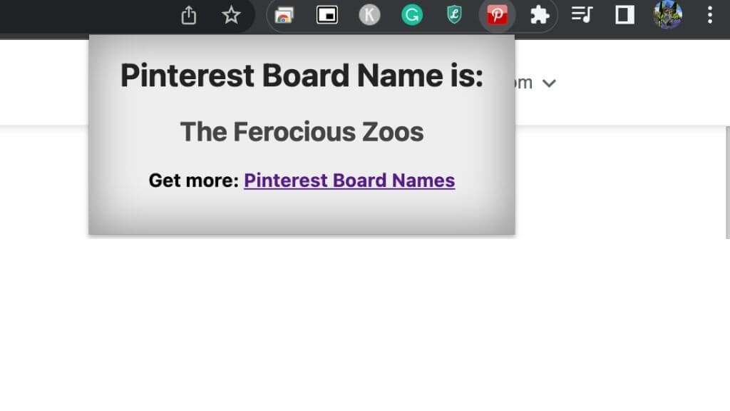 これはやや愚かなクロム拡張機能ですが、新しいPinterestボードにインスピレーションが必要な場合、このシンプルな名前のジェネレーターは必要なものを正確に提供する可能性があることがわかります。ボタンをクリックするたびに、拡張機能は別のランダムボード名のタイトルを表示します。それらのほとんどは完全にナンセンスですが、ほんの数分間クリックした後、いくつかのアイデアを非常に有望に思われました。確かに「いたずらなクッキー」!