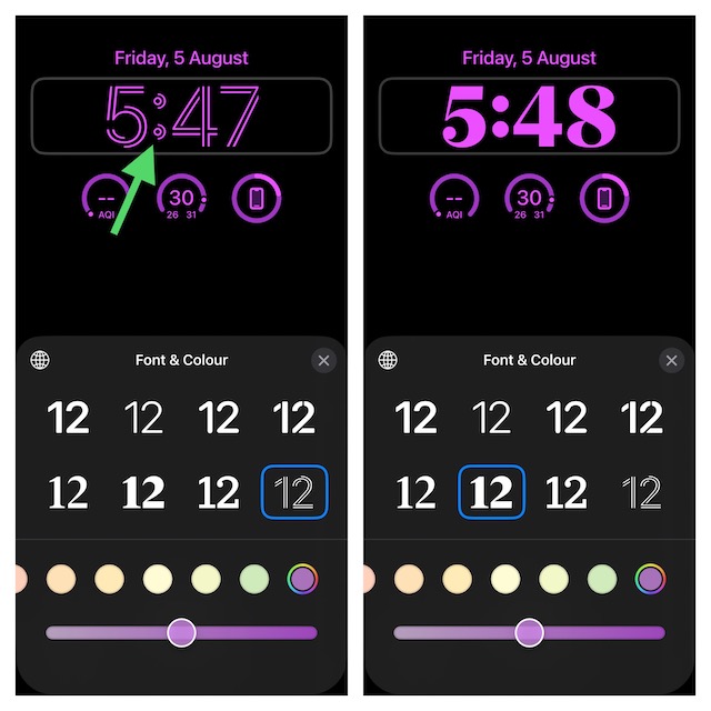 ロック画面のカスタマイズを次のレベルに引き上げたい場合は、フォントと色をカスタマイズする必要があります。 iOSの最新のイテレーションは、ロック画面を飾るために素敵なものを選択できるように、フォントの良いコレクションを提供しています。さらに、色を調整して、それが常にあなたのスタイルの商に沿っていることを確認することができます。