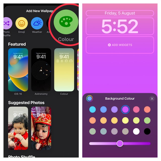 - 次に、色のスイッチまたはカラースライダーを使用して、iPhoneロック画面の色を変更できます。ロック画面をカスタマイズしたら、タップします終わり終了する。