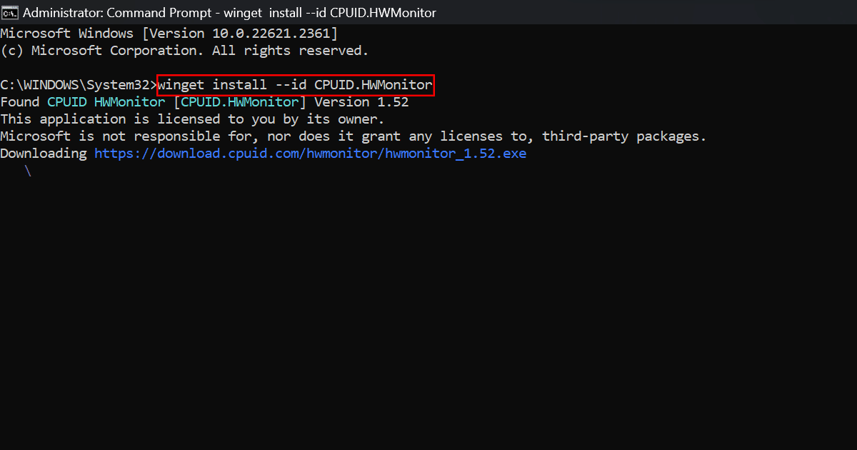 - 次のコマンドを入力してインストールしますhwmonitorアプリとプレス入力: