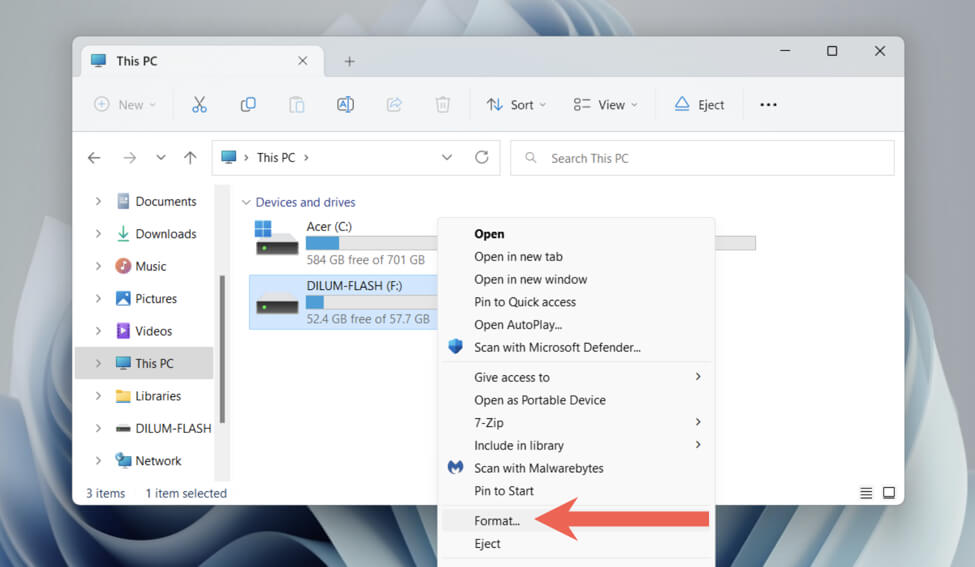 FAT32またはEXFATファイルシステムのUSBフラッシュドライブをフォーマットすることから始めなければなりません。すでにある場合は、次のセクションにスキップします。