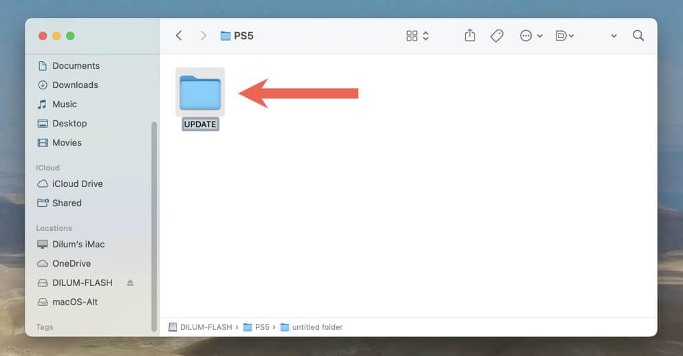 - 開きますPS5フォルダーとサブフォルダーのラベルを作成しますアップデート。