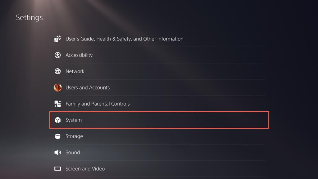 - 選択します設定PS5のホーム画面の右上の角にあります。