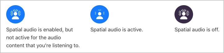 ヒント:コントロールセンターからの空間オーディオのステータスを制御および確認できます。このために、ボリュームスライダーをタッチして保持します。次のアイコンのいずれかが表示されます。