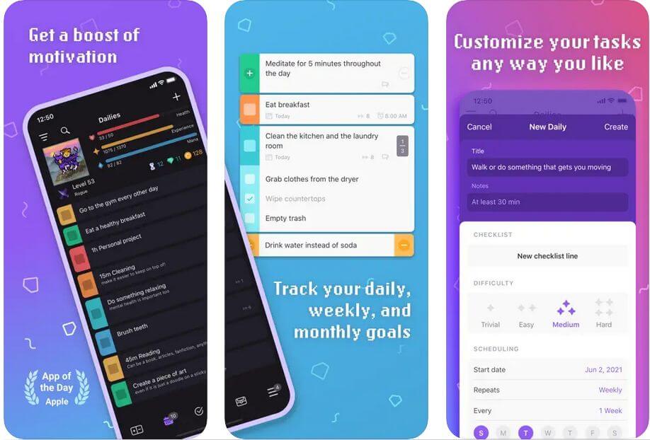 このアプリはフィットネスに焦点を合わせていませんが、Habiticaは依然としてワークアウトルーチンをゲームするのに最適な方法です。これは、独自のタスクを追加できる習慣トラッカーとして機能し、それらを完了すると、キャラクターをレベルアップするための経験ポイントを獲得できます。各レベルには、完了するための目標を設定しています。そうすると、コインを獲得できます。これらは、キャラクターのアイテムで自分に報いるために使用できます。