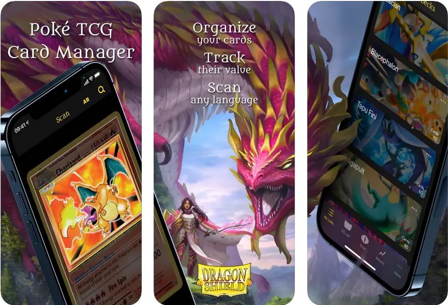 Dragon Shieldのこのアプリを使用すると、ポケモンカードをスキャンしてコレクションを簡単に整理できます。カードをデッキに並べ替え、ウィッシュリストとトレードリストを作成し、在庫内のすべてのカードを表示することができます。これはフォルダーに分類できます。在庫には、カードの価値も確認できます。