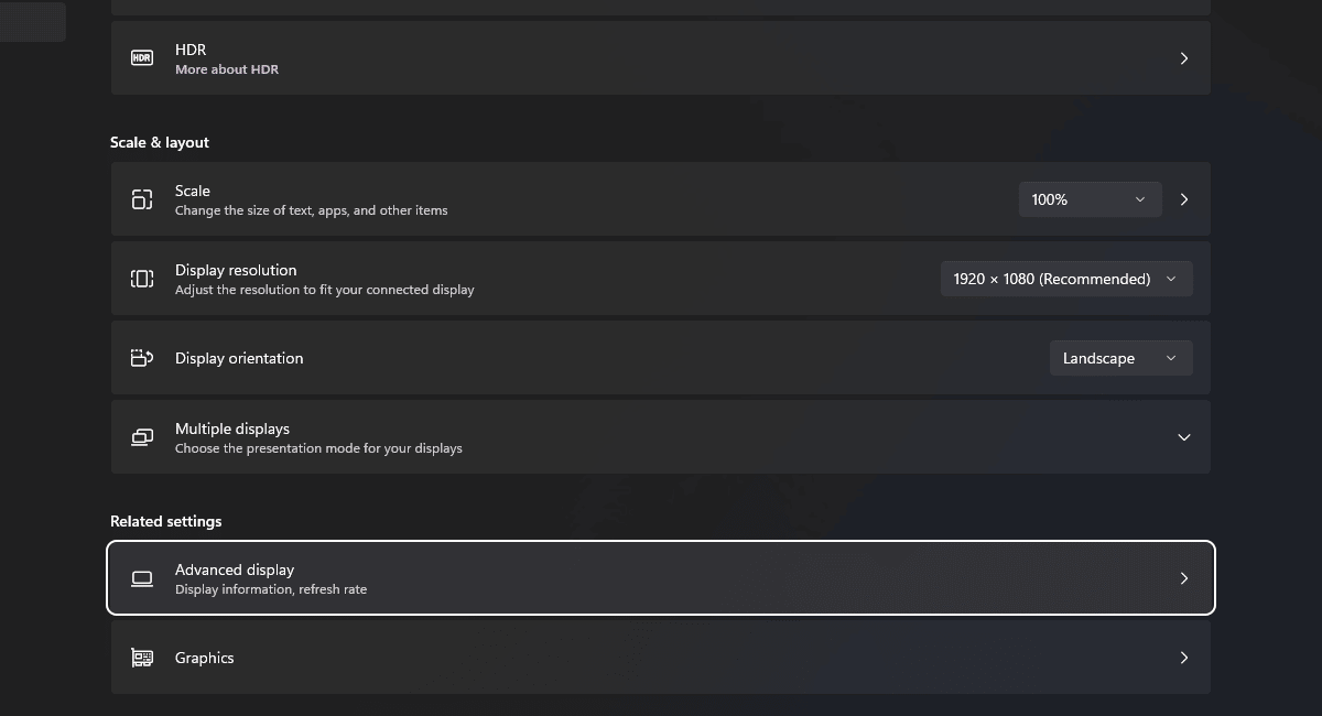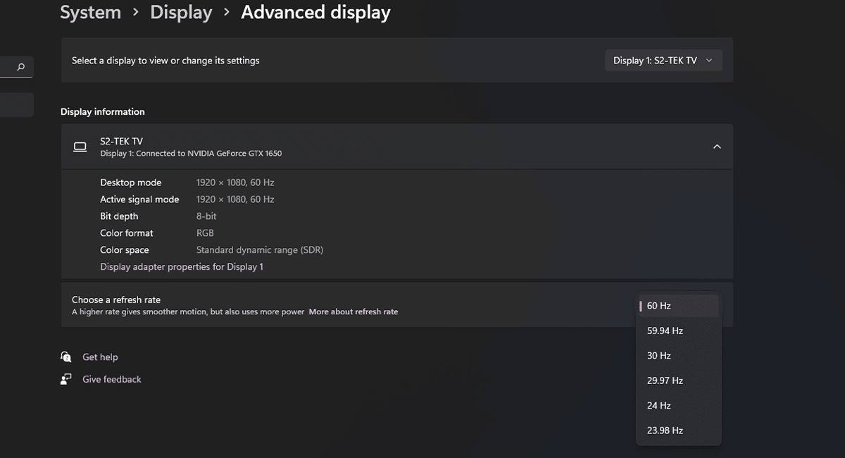 - そこから、PCディスプレイが互換性があるか低いかに応じて、画面Hzを調整できるオプションを確認できます。