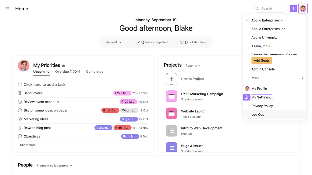 - コラボレーションツール。タスクにコメントし、チームメンバーに言及し、個々のタスク内で会話を行います。 Asanaは、コラボレーションを改善するための仮想会議管理ツールも提供しています。