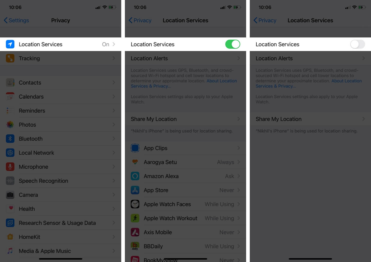 4。iPhoneのロケーションサービスをオフにします