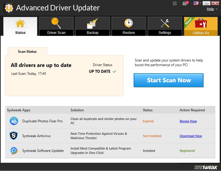 このようなシナリオでは、サードパーティのドライバーアップデーターアプリケーションにドライバーの更新を確認する必要があります。使用することを強くお勧めします高度なドライバーアップデーターすべてのドライバー要件について。この素晴らしいツールの助けを借りて、コンピューターを調べて、時代遅れまたは破損したドライバーを更新し、欠落したドライバーと破損したドライバーを交換できます。以下は、このソフトウェアを使用するための手順です。