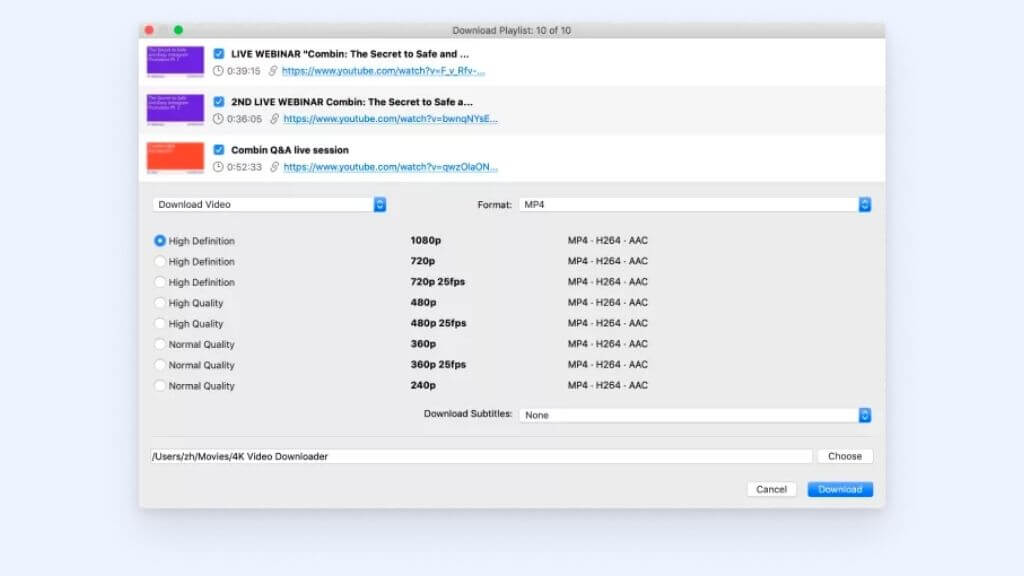 などの一部のアプリ4Kビデオダウンローダー、あなたが購読するチャネルからビデオを自動的にダウンロードして、プレイリストとチャネルのコンテンツをダウンロードするバッチをバッチできます。ただし、このようなYouTubeビデオをダウンロードすることは、会社の利用規約に反しています。