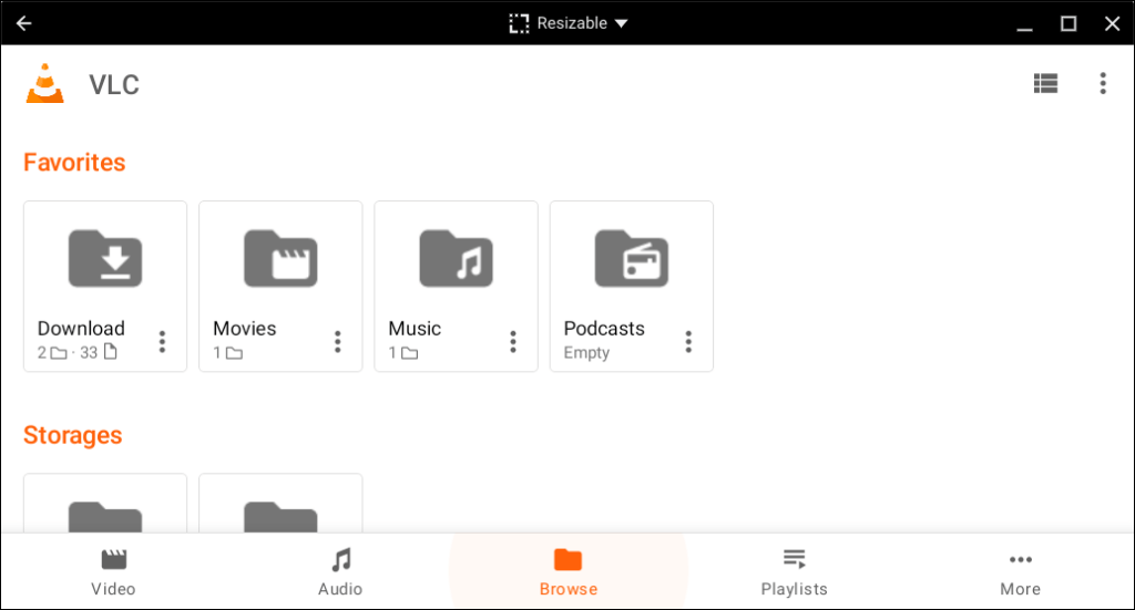 「Browse」タブは、Chromebookのストレージ内のメディアファイルにアクセスできる組み込みファイルマネージャーです。