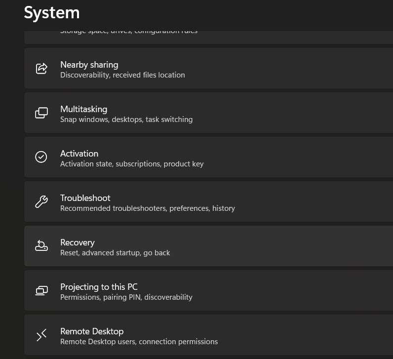 ステップ3:左側の[回復]タブに移動します。