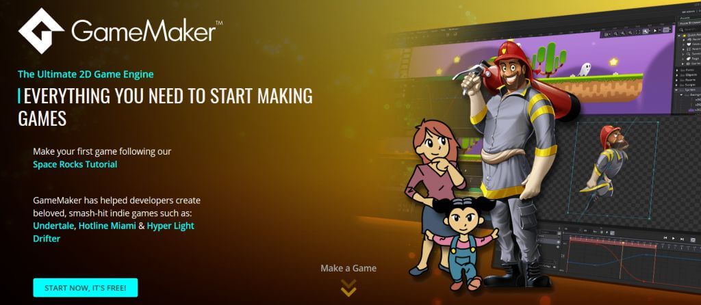 GameMaker Studioは、ゲーム開発の知識がほとんどない場合でも、2Dゲームを作成するのに最適です。このプログラムを使用すると、ゲームのあらゆる側面を簡単に編集し、想定通りにすることができます。コーディングの知識は必要ありません。しかし、このプログラムのシンプルさにだまされないでください。インディースタジオは、それを使用して、Undertale、Hotline Miami、Foragerなどの大きな称賛のゲームを作成しました。