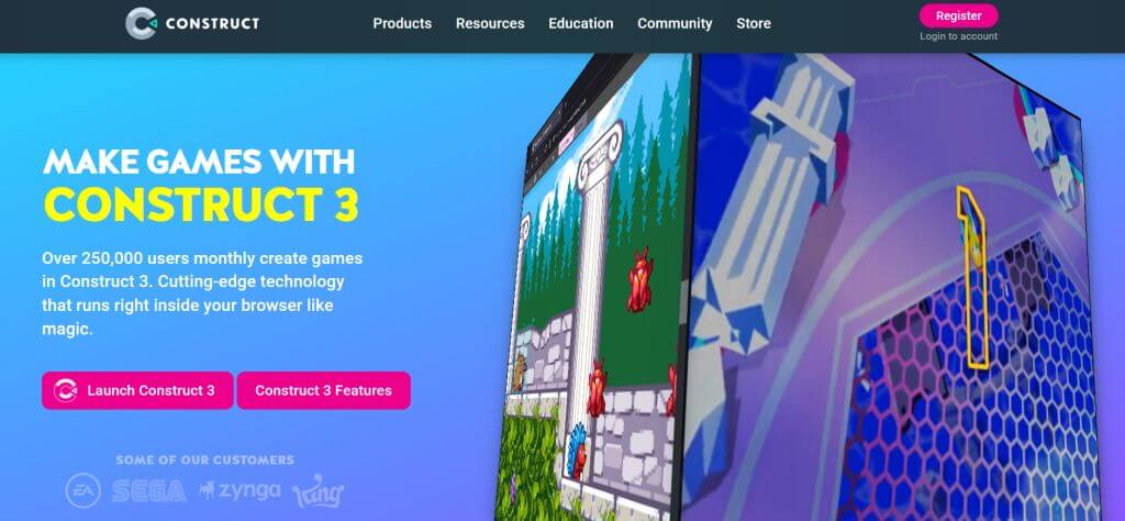 Construct 3は、Sega、Zynga、EAなどの企業が利用する優れたプログラムです。 AndroidまたはiOS向けのモバイルゲームの作成には主に便利ですが、デスクトップアプリの開発にも使用できます。プログラミングの知識はまったく必要ない2Dゲームを作成するために使用できます。ただし、必要に応じてJavaScriptプログラミングをいじくり回すことができます。