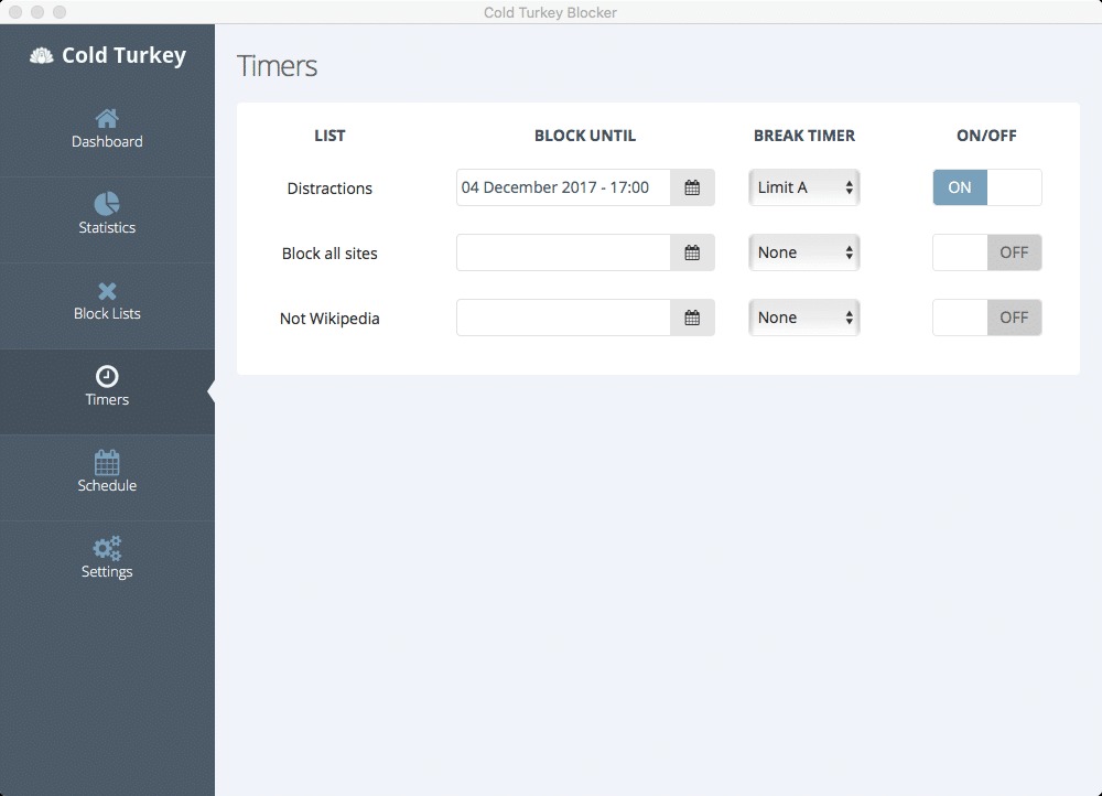 Cold Turkeyは、Windows 11向けの生産性アプリであり、作業中や勉強中にすべての気晴らしをブロックできます。あなたはそれを使用することができます気を散らすものは何でもブロックします、それがゲーム、subreddit、プログラム、または何かであろうと。冷たい七面鳥の最良の特徴の1つは、ブロックをスケジュールしますあなたのルーチンによると。