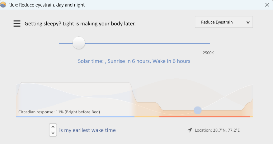 F.Luxは人気のスクリーンシェーダーアプリであり、Windows画面の明るさにフィルターを追加しますあなたの目を温かく心地よくするために。システムを使用している間、目を害して目を害し、青い光から目を保護するシンプルな青色光フィルターとして機能します。