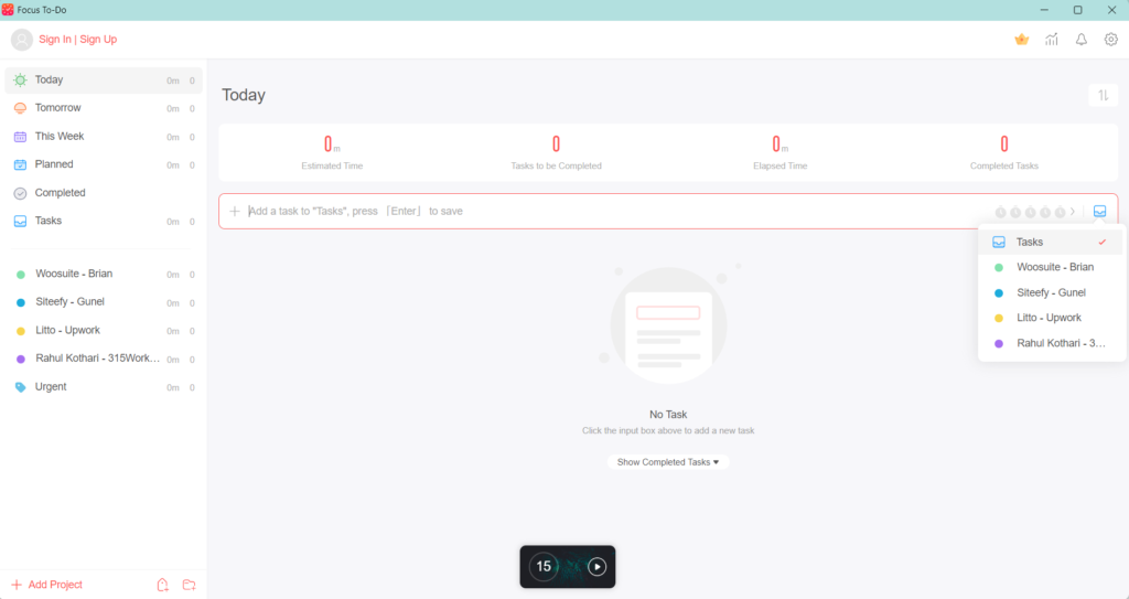 Pomodoroは、セッションを複数の25分間のセグメントに分割して5分間の休憩を壊すことで生産性を向上させるのに役立つ時間管理手法です。まさに、呼ばれるアプリがありますフォーカスツードゥこのテクニックに触発されました。プロジェクトを作成し、タスクを割り当てるだけで、25分間のタイマーを開始するだけです。