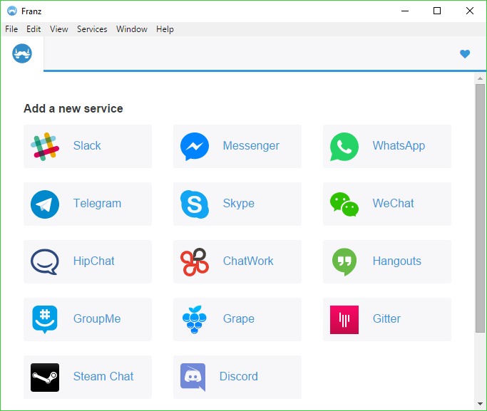 Windows11向けの最高のアプリの最後のアプリ リストはですフランツ。このリストにフランツを追加しました。すべてのビジネスアカウントとプライベートアカウントを同時に管理します簡単に1つの屋根の下。 WhatsApp、Facebook Messenger、Slack、Instagram、Telegram、Zendeskなど、ほぼすべてのソーシャルメディアおよびメッセージングサービスをサポートしています。