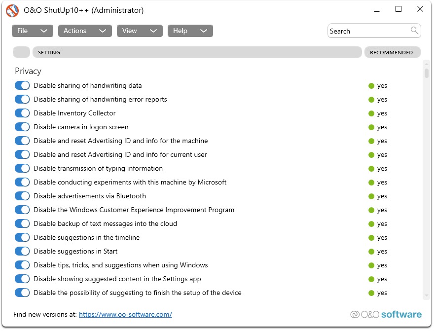 Windows 11リストに最適なアプリの次のアプリはShutup10 ++、スパイアンチスパイツールです。それはあなたを許しますあらゆる種類のテレメトリー、バックグラウンドサービス、設定を無効にします。そしてすべて それはあなたのオンラインプライバシーを傷つけ、あなたのデータを盗むことができます。アプリを開くと、ブロックできるすべてのサービスが表示されます。