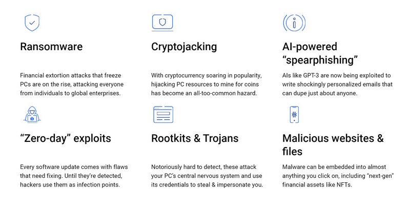 また、人工知能(AI)を使用して、ボットやGPT-3などの他のAIによって書かれたフィッシングメールを検出して、フィッシングメールを介してユーザーを誘惑します。さらに、このプログラムは、インターネットからダウンロードしたWeb上の悪意のあるWebサイトやファイルからも保護します。