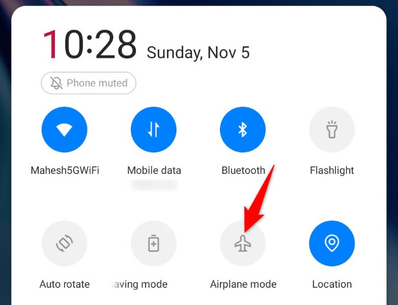 コードの問題を修正する別の方法は、携帯電話の飛行機モードをオンにして戻すことです。モードを有効にすると、携帯電話のすべてのネットワーク接続をオフにし、モードを無効にすると、それらの接続が復元されます。これにより、携帯電話の接続の問題を修正するのに役立ちます。