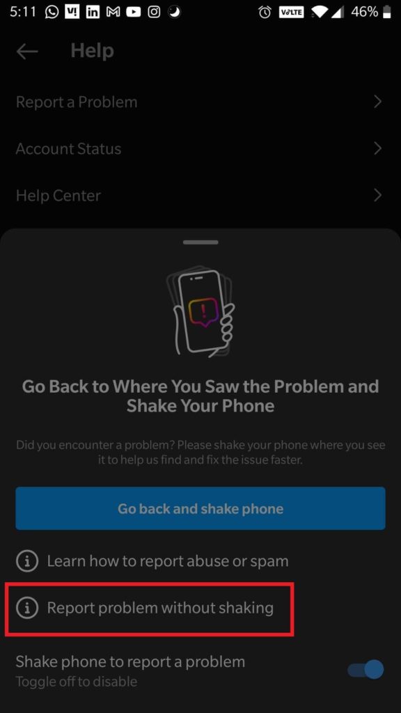 Instagramの直接的なメッセージが機能しない問題の前述の修正がない場合、Instagramサポートチームに連絡してみてください。 Instagramのサポートに連絡するには、次の手順に従ってください。
